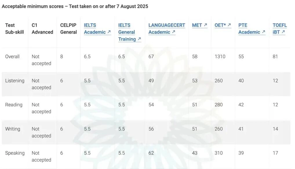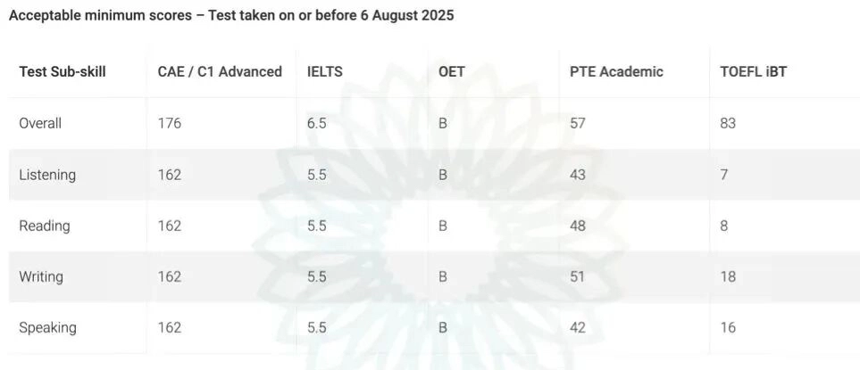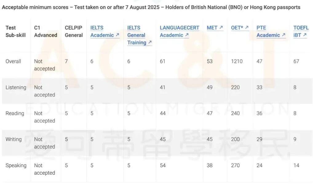 8月7日起,由於C1 Advanced不再適用於雅思6分以下同等的英文要求,因此不再適用於485簽證申請。另外,移民局目前已接受雅思單項重考One Skill Retake (OSR) 以及MET單項重考Single Section Retake (SSR)成績用於申請485簽證,但重考必須在遞交485申請之前完成。