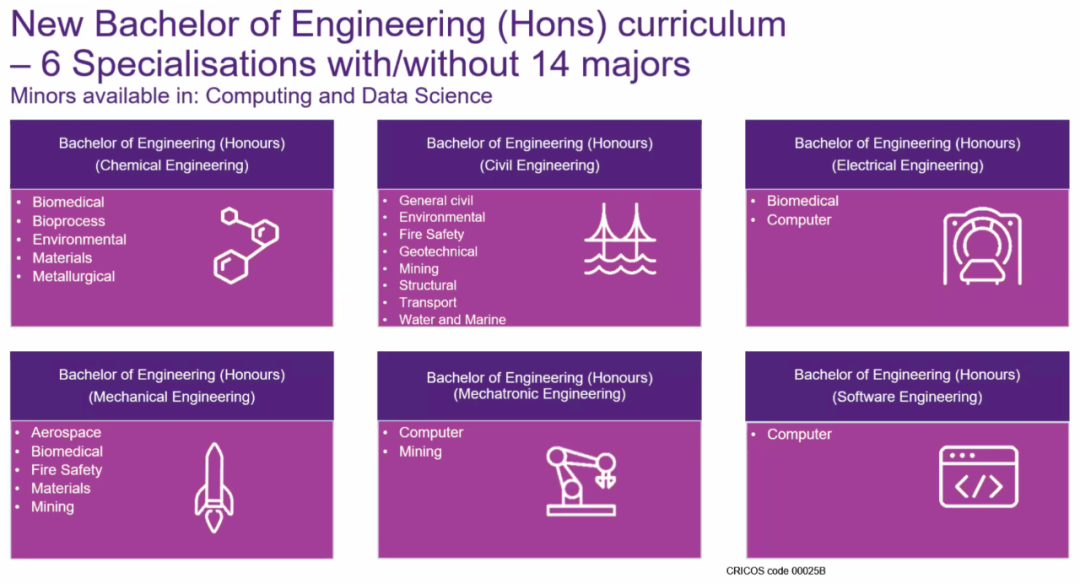 From 2021, the Bachelor of Design (3 years) will be added. This course provides 6 hands-on studio based design course, and can be combined with Engineering majors to study double degrees.