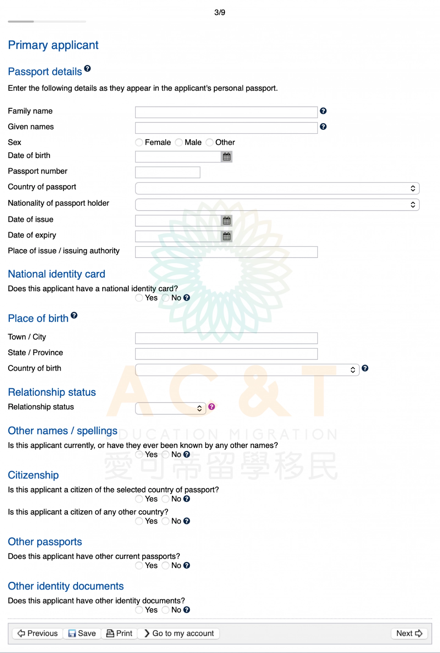 填寫個人信息,包括護照資料、身分證資料、國籍、其他證件資料等個資。若有出生醫學證明 / 駕照 / 結婚證書 需在 Other identity documents 加上