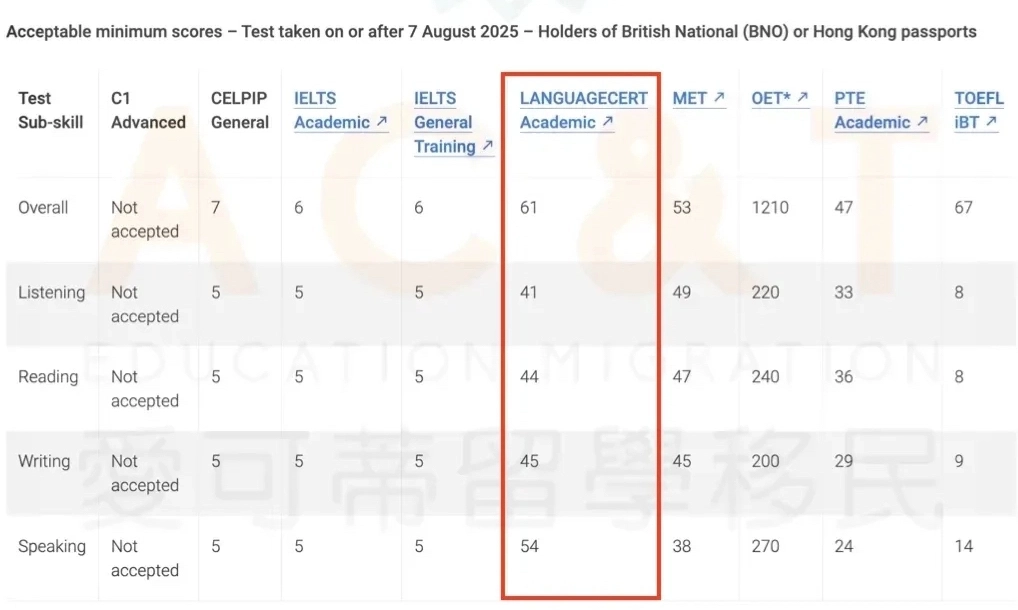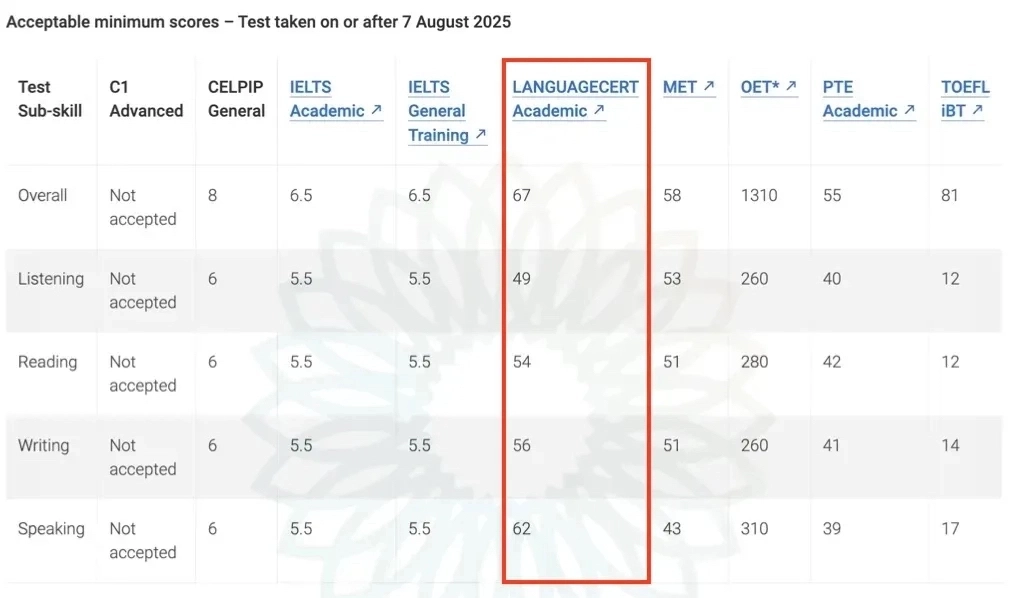 2025年8月7日起,澳洲移民局 Department of Home Affairs開始實施最新的英文要求,其中LanguageCert Academic(簡稱朗思A)英語考試也已得到了移民局的官方認可,可用於大部分簽證申請以及技術移民英文加分 包括學生簽證、工作簽證以及技術移民英文加分等。