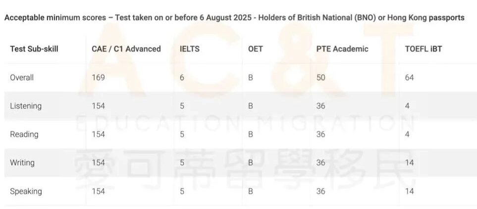 針對英國、美國、加拿大、紐西蘭、愛爾蘭護照的申請人,申請485簽證可豁免英文考試要求。