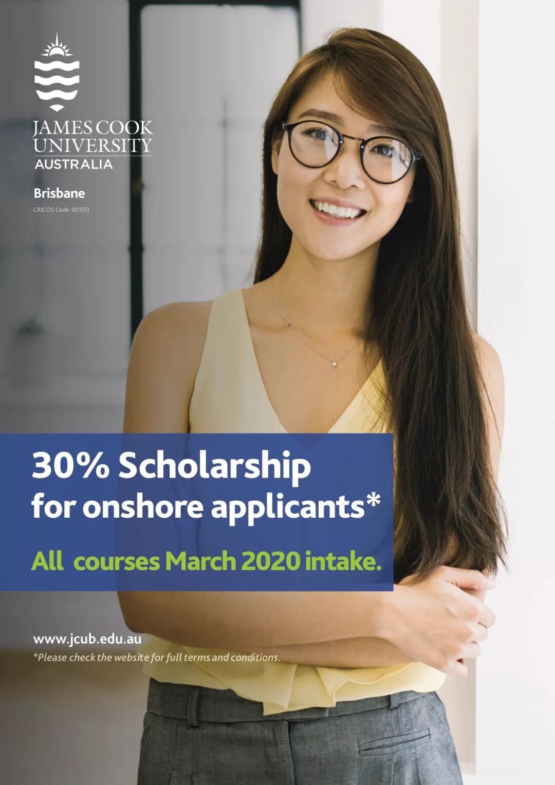 在澳的留學生只要申請JCUB Diploma, Bachelor, 或Masters學的課,今年3月入學,就有機會獲30%的獎學金,名額有限,機會難得!