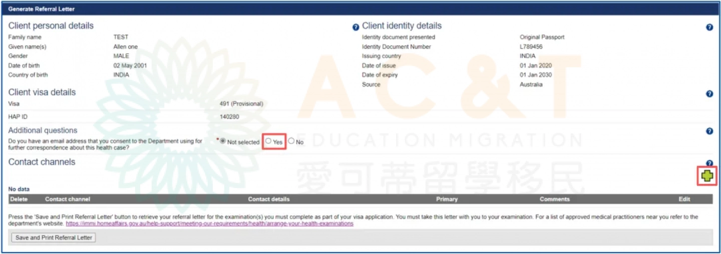 ❗❗體檢推薦信中最重要的資訊是:HAP ID 體檢號碼!之後預約體檢和移民局簽證申請表裡都必須提供這個HAP ID體檢號,請務必保存好。