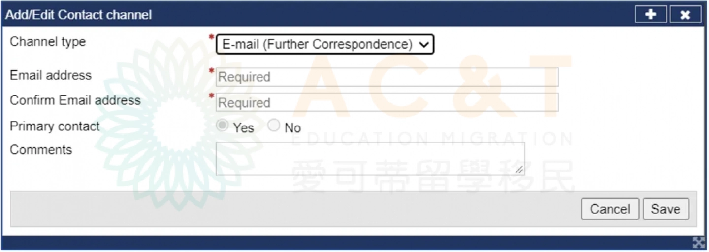 03 聯絡方式類型選擇 E-mail (Further Correspondence),填寫郵件地址並儲存